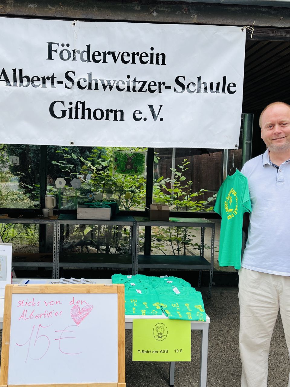 Frau Mende und Albert begrüßten unsere neuen Albert-Schweitzer-Kinder mit einem Theaterstück und vielen stimmungsvollen Liedern des Schulchors "Albertinies". Während der ersten Unterrichtsstunde konnten sich die Eltern und Geschwister bei Kaffee und Kuchen die Zeit vertreiben und am Fördervereinsstand Schul-T-shirts oder den Musikstick der "Albertinies" kaufen. Bei strahlendem Sonnenschein wurde es ein rundum gelungenes Fest.